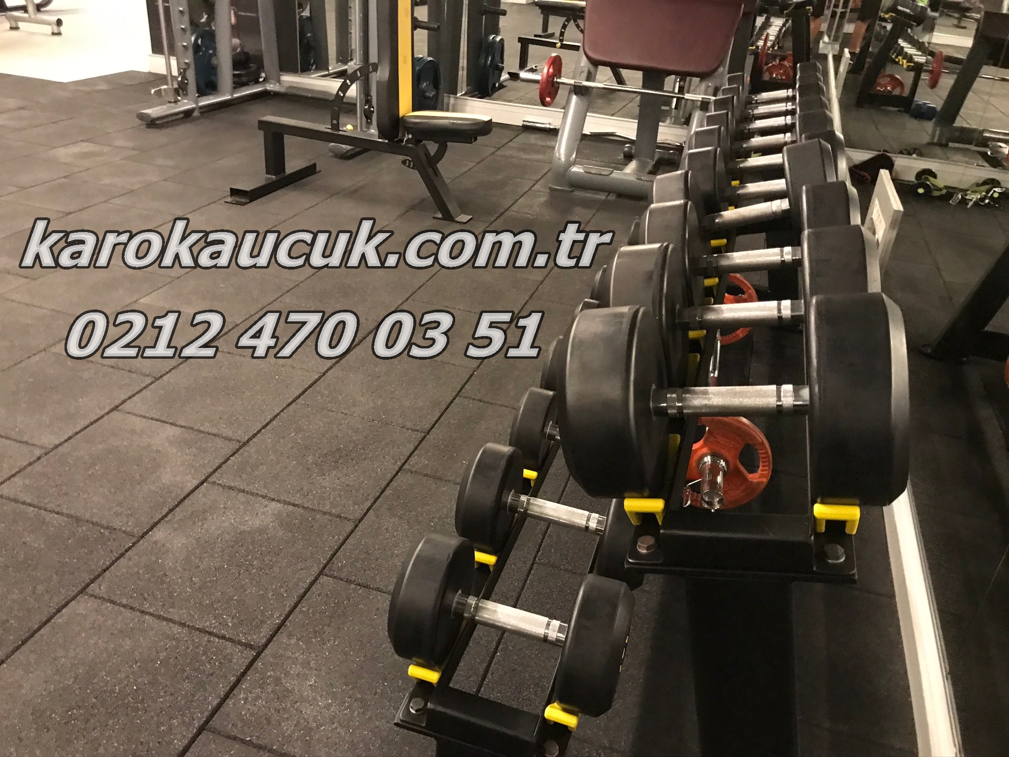 Fitness, vücut geliştirme ve spor salonları için özel üretilmiş karo kauçuk ile dambıllar ve ağırlıkların yere bırakılması sonucu çıkan sesin yalıtımı sağlanmıştır. Ayrıca bu özel ürünümüz ile temizlik personelinin gün içinde sürekli olarak sürtünme ve kullanımdan dolayı kopan sbr granül parçalarını temizliğini ortadan kaldırmış bulunmaktayız. Karo kauçuk zemin kaplama de-monte olabilme özelliği sayesinde çok kolay bir şekilde tamiri ve bakımı yapılabilmektedir.